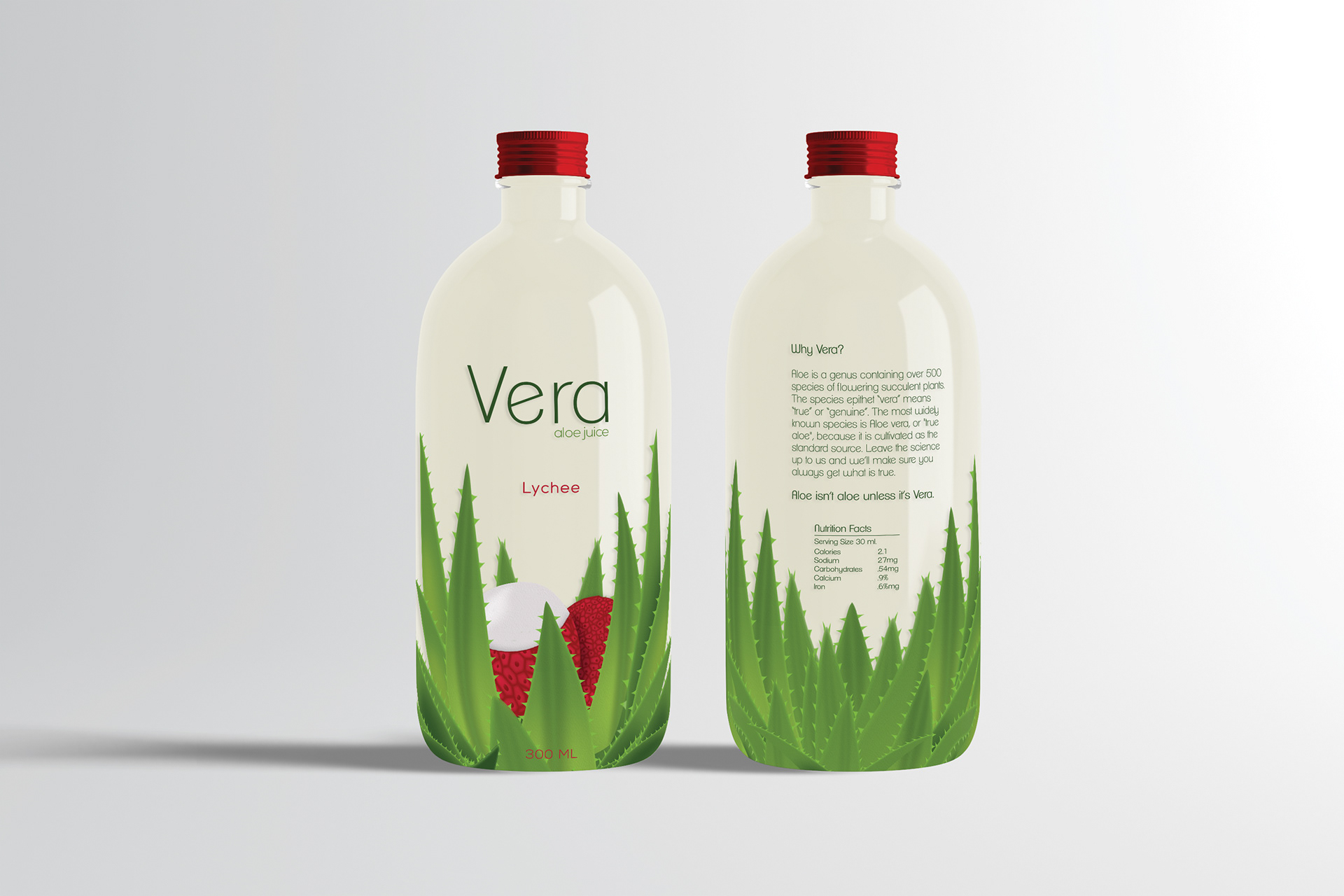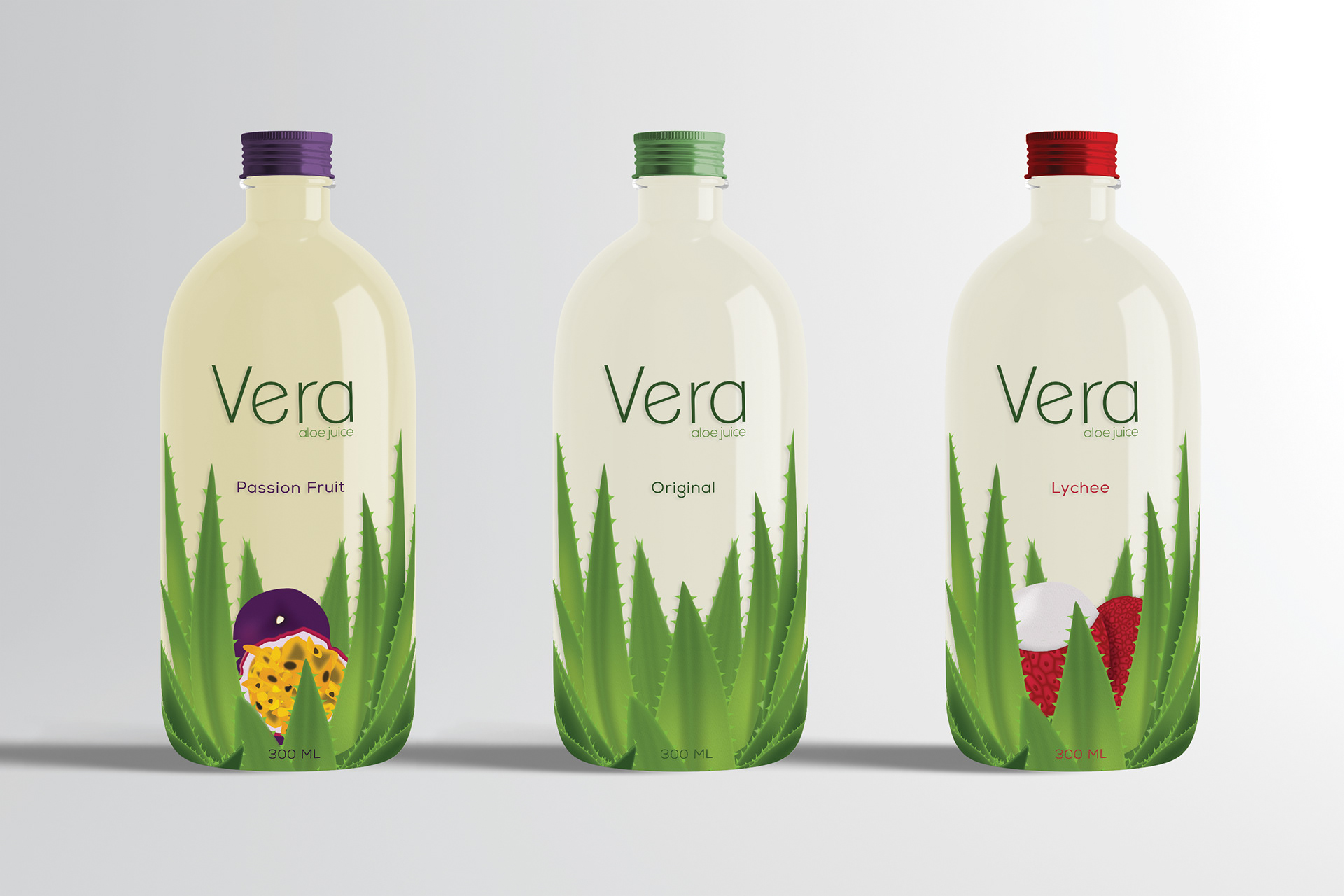 Beverage Packaging concept for aloe vera juice. Custom illustrations and logo design.